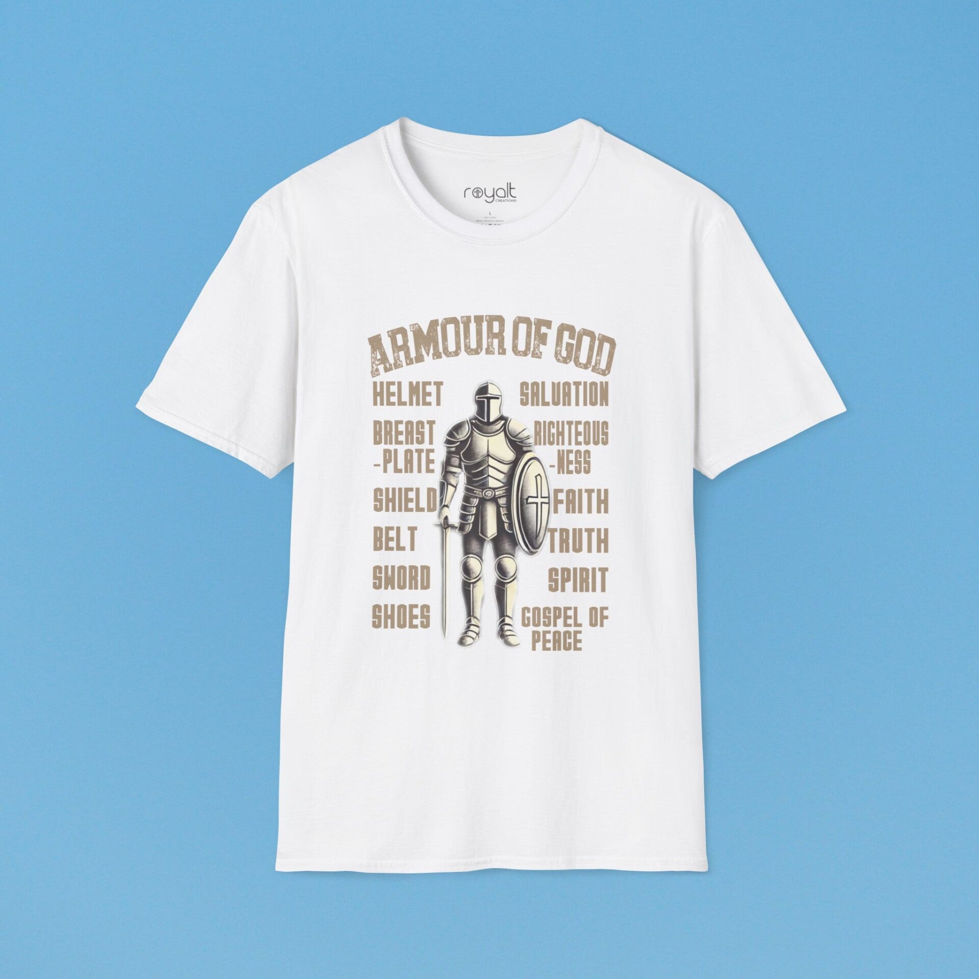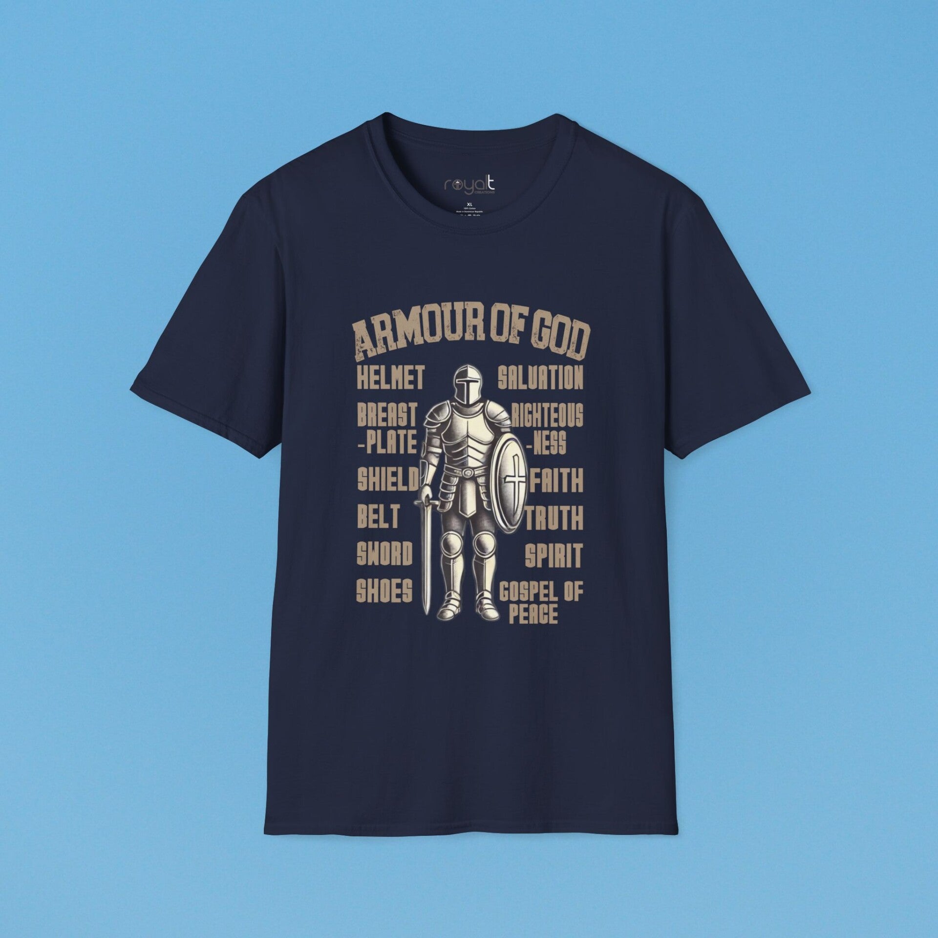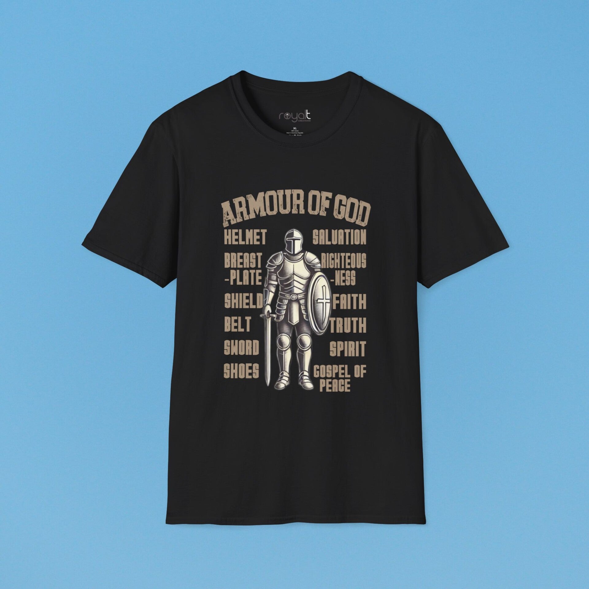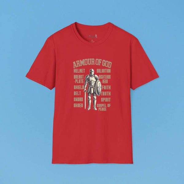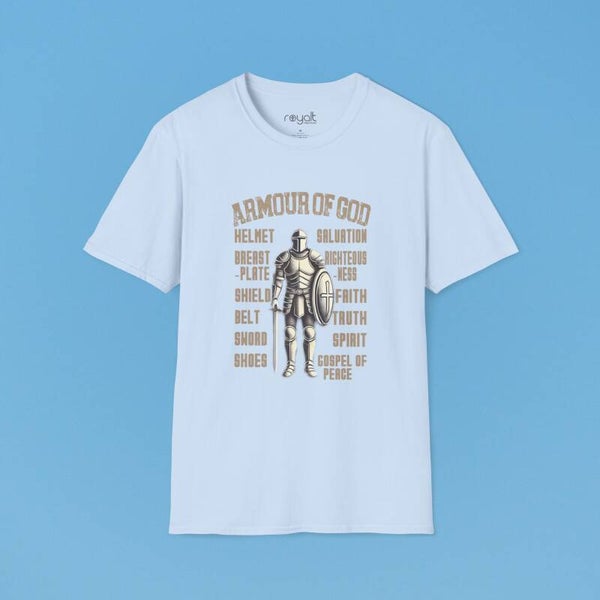Stand strong in faith with this bold “Armour of God” T-shirt—designed to remind you daily to suit up with God's protection, power, and purpose.