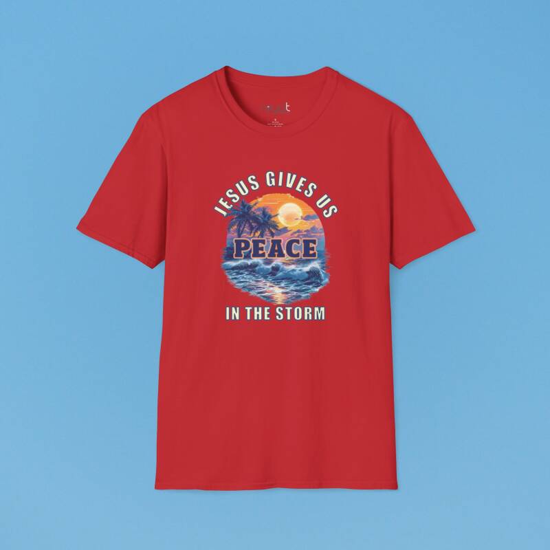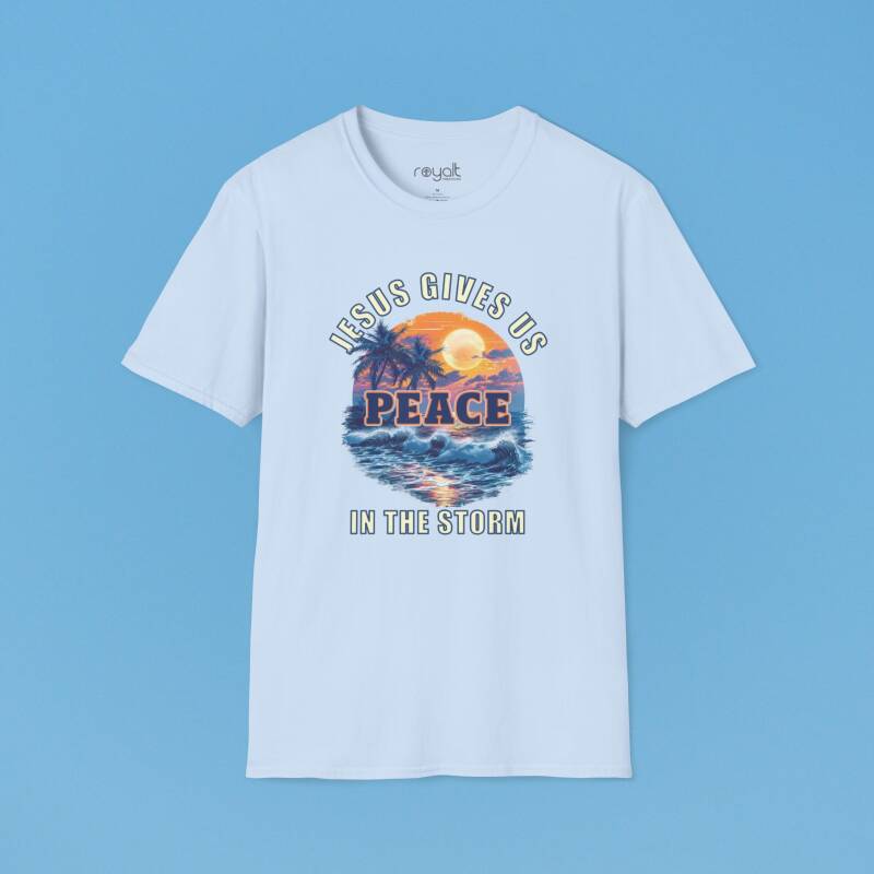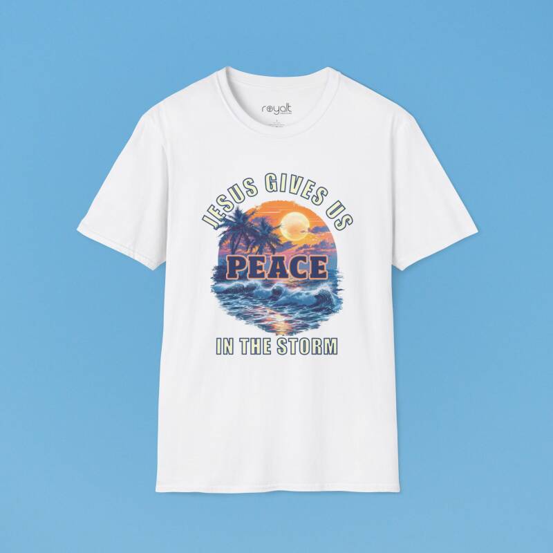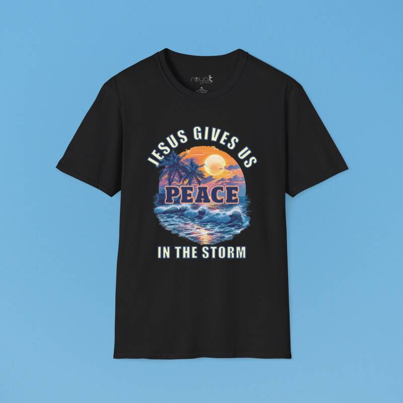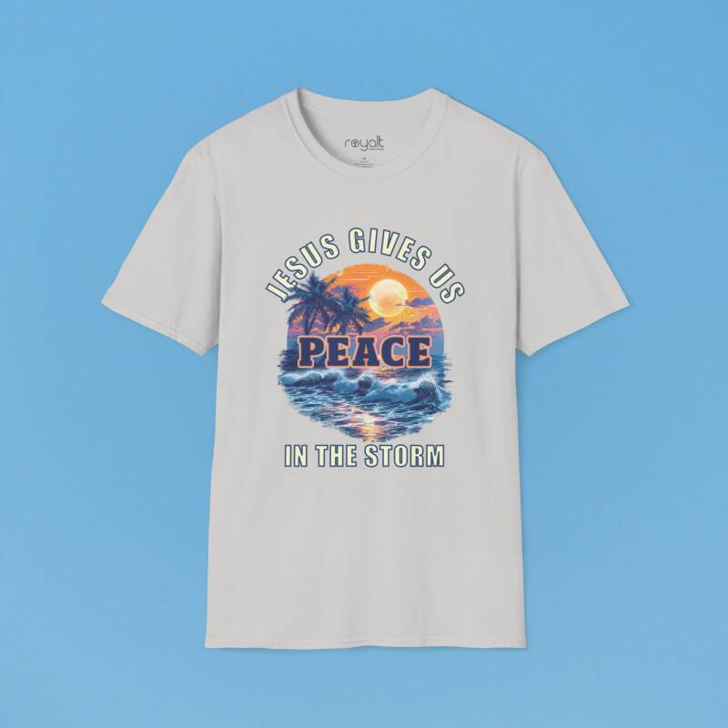 Find calm in chaos with this encouraging “Jesus Gives Us Peace in the Storm” T-shirt—designed to remind you that He is your anchor in every trial.