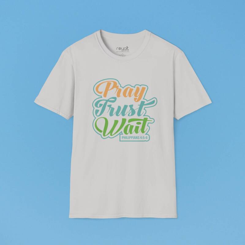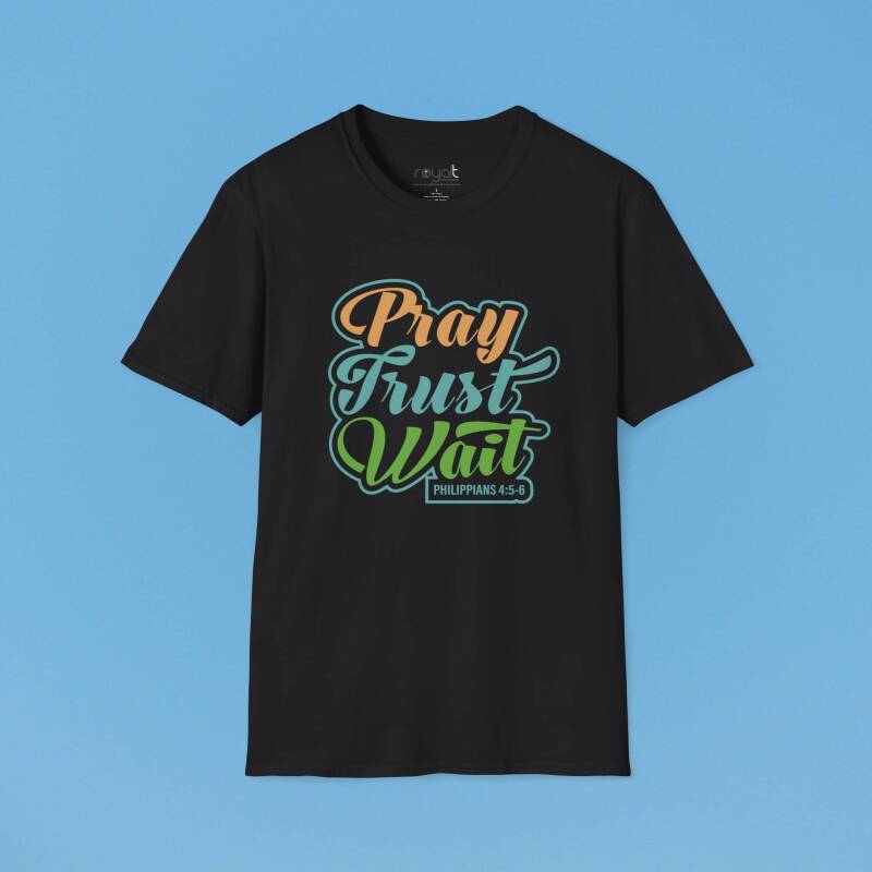 Embrace the journey with this encouraging “Pray, Trust, Wait” T-shirt—a gentle reminder to lean on God’s timing and faithfulness every step of the way.